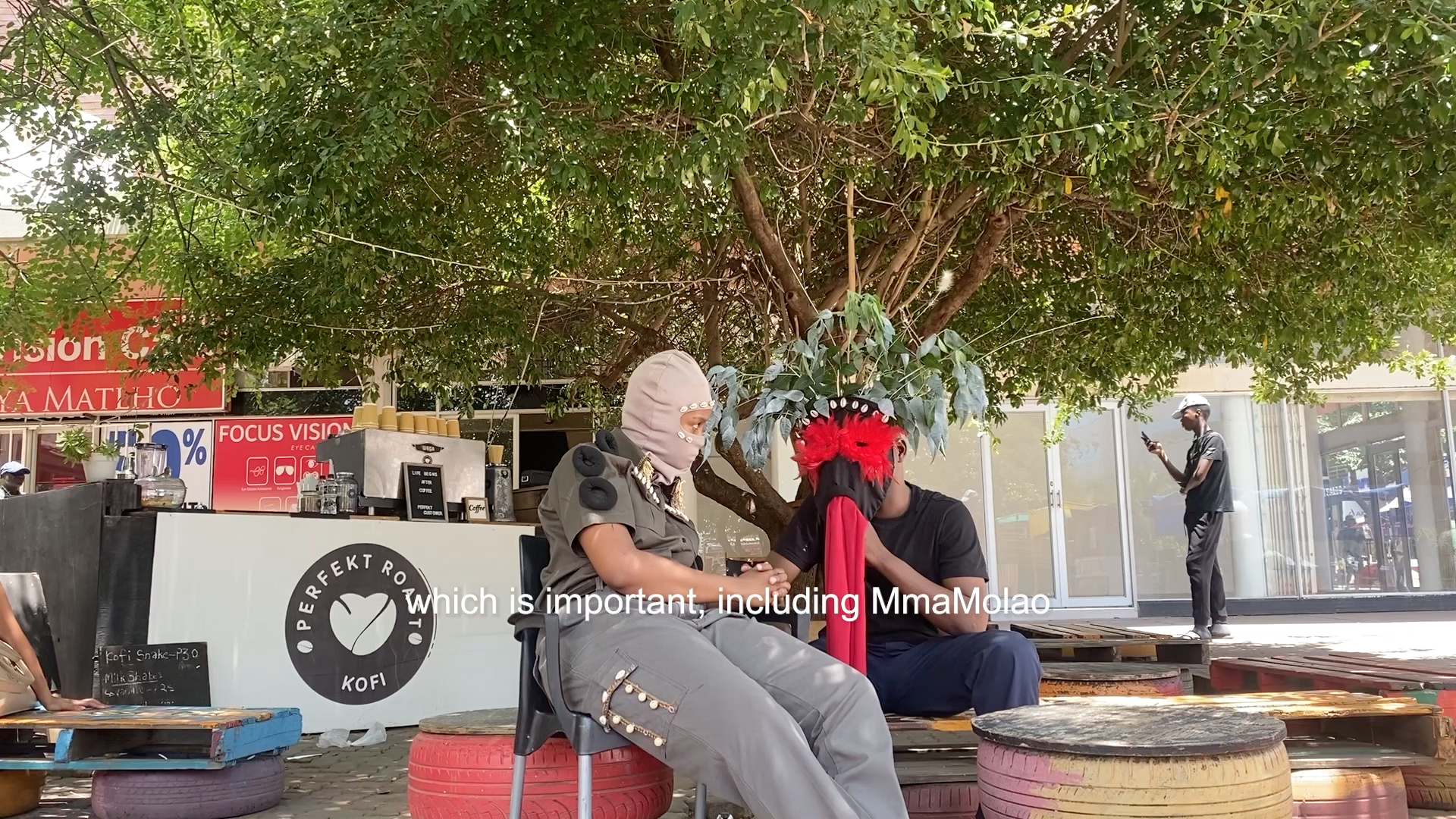 Messages to MmaMolao (Transl. “Madam of the Law”) and Loleme (Transl. “tongue”) are video and photographic series that take cue from popularised on-the-street style interviews and draw on the conventions of podcast style interviews with casual social commentary.